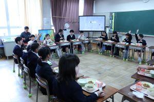 栄養教諭の中尾先生より学校給食についてのお話を1年生の保護者の方にしていただきました。