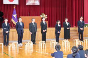 最初は新任式です。新任の先生方の紹介と学校アドバイザーの竹本先生の紹介です。