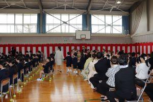 いよいよ入学式。新入生の入場です。