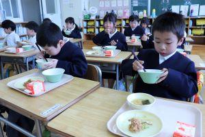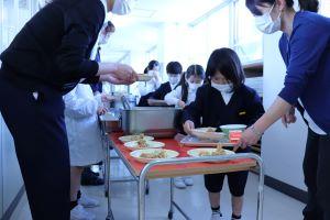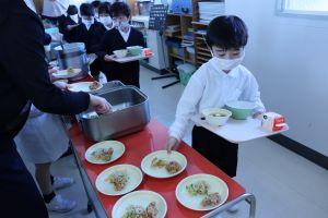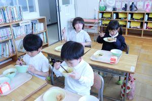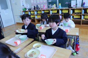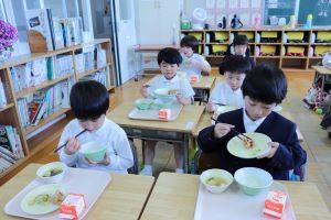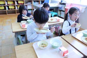 朝歩いて登校し、4時間目まで学習すると、おなかはペコペコになるようです。