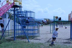 休み時間の運動場では、すでに学年を越えて遊んでいます。