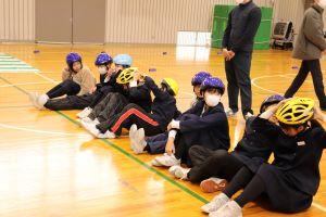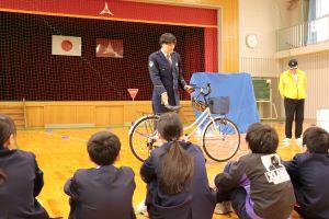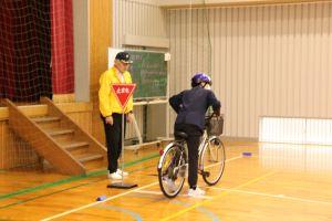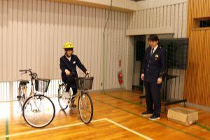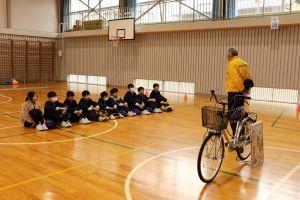 20日、中学校まで自転車通学する6年生のための自転車教室に能美警察署の方、交通安全協会の方がきてくださいました。