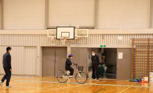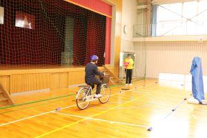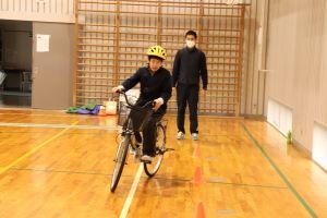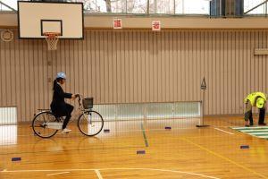 一人ずつ、自転車に乗ってコースを走ります。