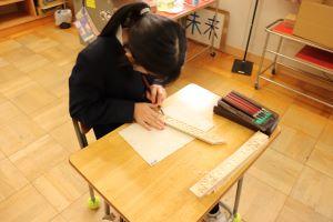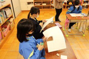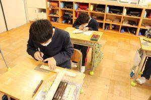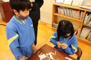 工作用紙のはこづくりを先に取り組んでいる二人です。