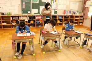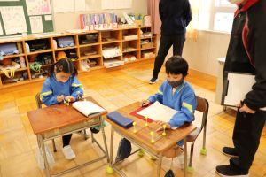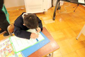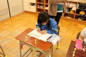 教室では、いつもより小さく書く名前の練習を行っていました。