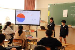 4年生は、国語の単元「調べて話そう、生活調査隊」で学習したことをわかあゆタイムに各教室に行き、発表しました。