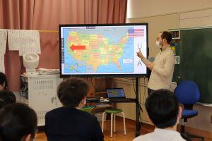5年生は、道徳の時間に川北中学校ALTのジョシュアウィリアムズ先生をお迎えし、ふるさとのカリフォルニアについて教えてもらいました。
