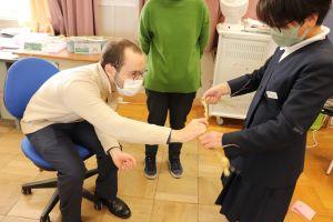 今日も3人の6年生が校長室で給食を食べました。