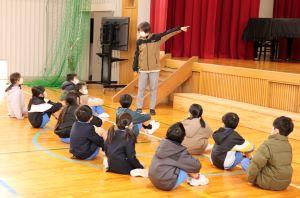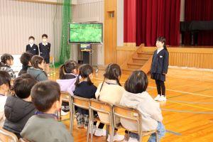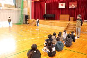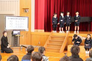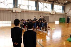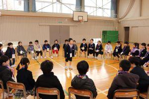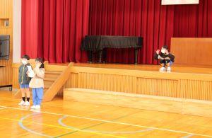 体育館では、保育所の年長さんをお招きして「新1年生をむかえる会」を行いました。