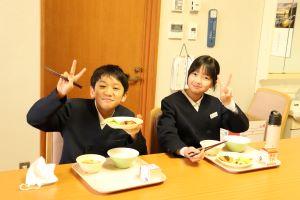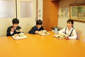 今日は、3名の6年生が校長室で給食を食べました。
