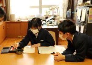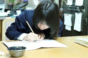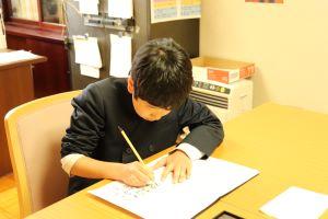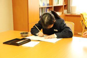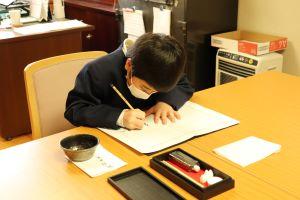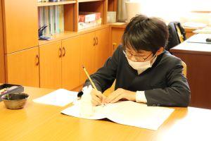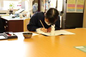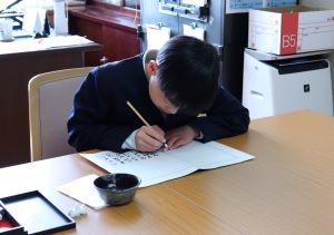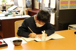 中島小学校の卒業生として一筆一筆丁寧に書いていました。