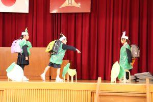 5年生は、日本の伝統の遊びや文学について伝えました。
