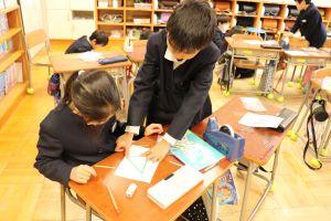 この単元では、分からなかったり、少し難しかったりしたら、ペアで相談したり、他の友達のところへいって聞いたりしながら、自分でできるように進めていました。