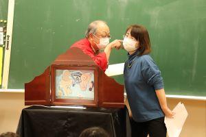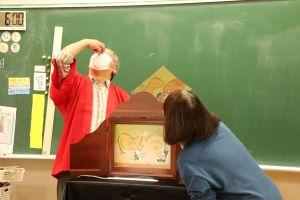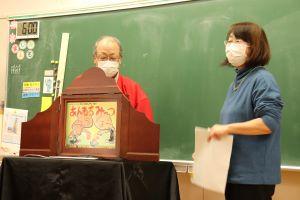 次の「あんもちみっつ」は、おじいさん役とおばあさん役に分かれ、二人での紙芝居です。