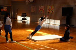 マットでの練習では、どの子も軽々跳んでいて、ぜったい記録は伸びていると思いました。