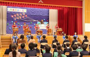 最初の出し物は、3年生の「手取亢龍太鼓」です。