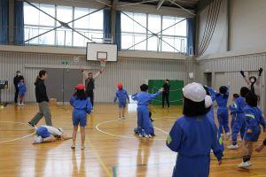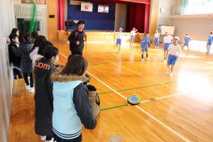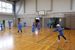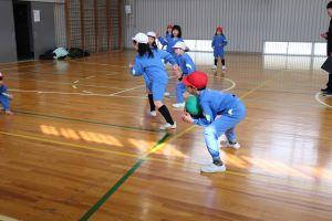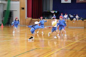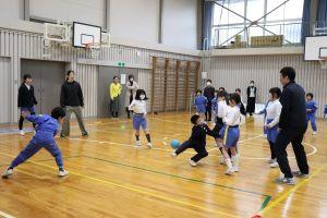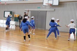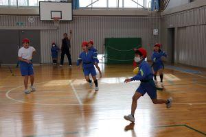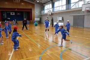 学年対抗で行うので、助っ人の先生を頼むことができ、高学年は、利き手ではない方でなげるなど工夫したルールで行いました。下の学年が上の学年に勝つこともあり、大いに盛り上がりました。