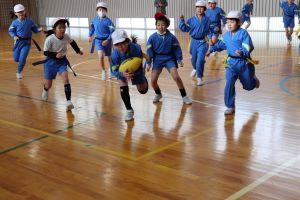 今まで体育の時間に4年生から「タグラグビー」のルールや動きを教えてもらいながら、練習してきました。