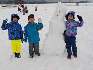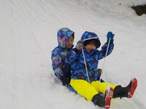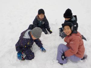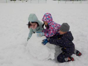 そりですべって遊んだり、雪だるまを作ったりと、雪遊びを満喫していました。
