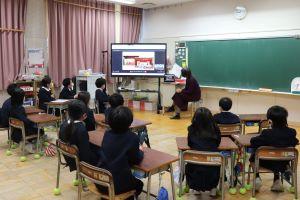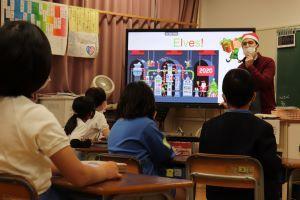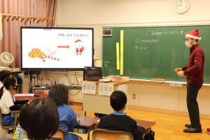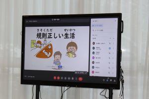 冬休みの安全な過ごし方について、中田先生と西先生が電子黒板を活用して伝えてくれました。