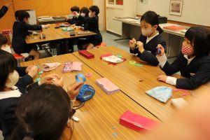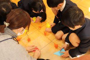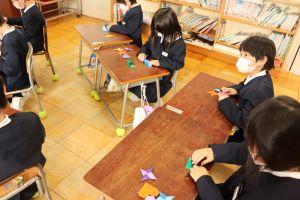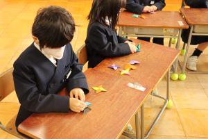 最初は、「うーん?」と困った顔をしていた1年生も、絶対作れるようになりたいので、何度も折り方を確認して折っていました。