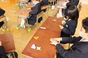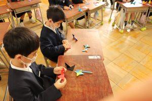 今日は、1年生が「ハート」「ツル」「しゅりけん」にチャレンジしていました。