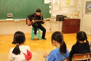 2年教室から、ギターの音が聞こえてきたので、見にいくと担任の池本先生でした。
