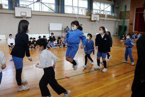 縦割りチームで練習することで、チームのみんなが跳べるようになります。チーム練習のよさだと思います。