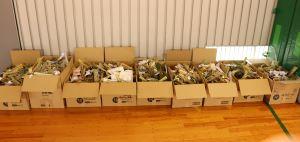 燃えない物がついていないか確かめて、段ボールに入れます。