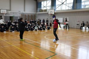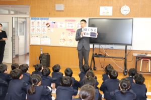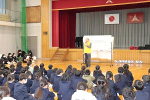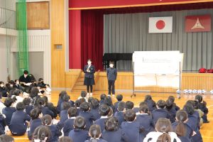 冬休み中に気を付けてほしいことを中田先生と西先生が伝えました。