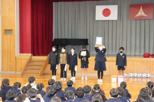 今年度は、読書感想文や感想画が県へ出品されたり、三行詩コンクールや未来へつむぐ家族の手紙の作品が入賞したりと子ども達のがんばっていることがいろいろなところで認められていて大変嬉しく思いました。