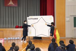 人権集会で児童会から「心のかがやき収穫祭」の取組について提案がありました。