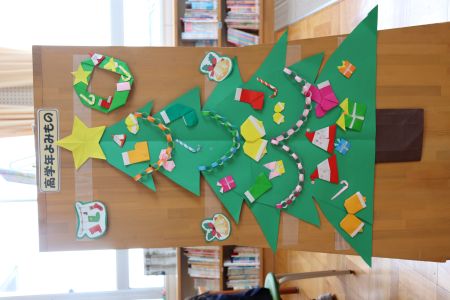 図書室では、折り紙で掲示物も作成できます。