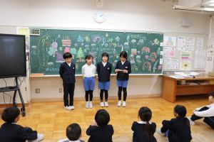 2学期の振り返りでは、苦手なことでもあきらめずに頑張ったこと、あきらめなかったからできるようになったこと、自分の成長したこと、上級生として取り組んだことなど堂々と発表している姿が大変素晴らしかったです。