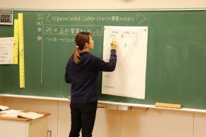 3年生は、かけ算のひっ算の学習です。ひっ算の仕方を考えます。
