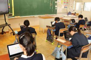 5年生は、国語の学習です。川北町のいろいろなデータをもとに、考えています。