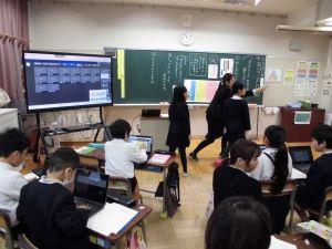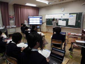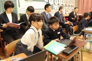 先生方は、クラスの子どもたちの人数より、多い参観者に少々緊張していたようですが、子どもたちは、いつも通り一生懸命学習に参加していました。