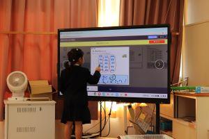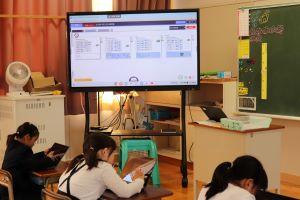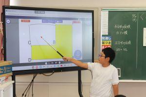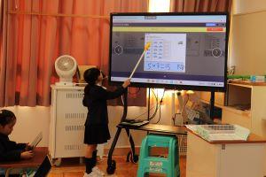 自分の考えを電子黒板を使いながら説明します。