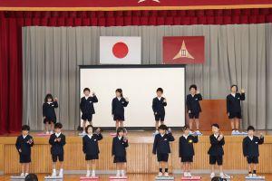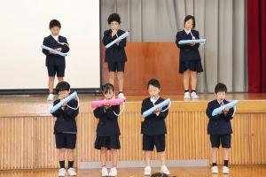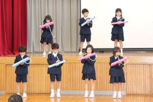 1年生は、ピアニカでひのまるの演奏とかえ歌。