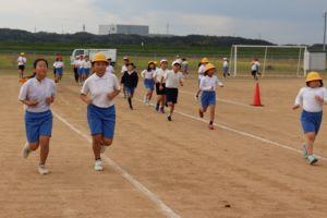長休み、運動場を8分間、みんなで走ります。
