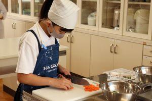 ピーマンのへたと種をとったり、にんじんを短冊切りにしたりと慎重に取り組んでいました。