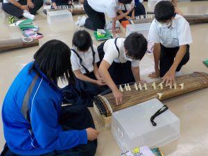 今日は、川北中学校へ出向き、4,5年生が和楽器交流で箏の演奏を行ってきました。
