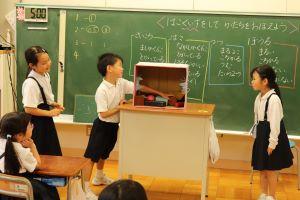 最初に先生2人の英語でのシアターを見た後、分かったことを発表します。