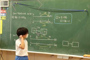 5年生は、数直線図を使い、立式の説明を行っていました。