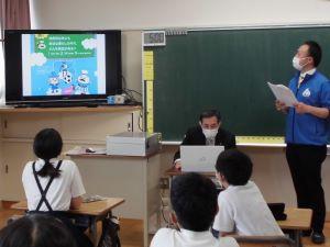 小松法人会から3名の方が来てくださり、税について教えてくださいました。最初は、社会科で学習した内容の復習クイズに10問取り組みました。全問正解者が1人いました。