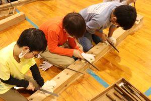予定を変更して、焼き杉クラフトを製作しました。