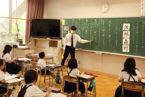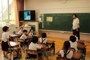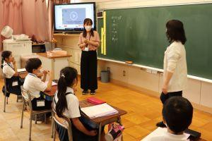 3年生から始まる外国語活動は、柿谷先生とALTの中嶋先生が行います。