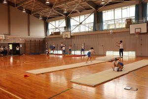 6年生は、体育館で器械運動に取り組んでいました。
