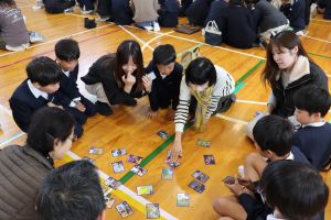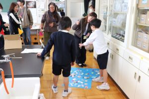 4年生も見学や体験を通して教えてもらったこと、学んだことを地域の方、保護者の方へいろいろな方法で伝えていました。田中選手から教えてもらった「ボッチャ」も体験してもらいました。