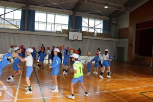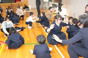 これまで、6年生を送る会や1年生を迎える会で発表している前学年の姿をみているせいか、リズムを覚えるのが早いと原田さんはおっしゃっていました。